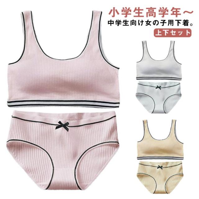 上下セット ジュニアブラ 2点セット ショーツ ブラ キッズ 下着セット ブラジャー キッズブラ スタンダードショーツ ノンワイヤー ファーストブラ インナー アンダーウェア ジュニアブラジャー スポーツブラ 中学生 小学生 下着 ガールズ 肌着 S M L