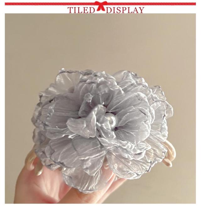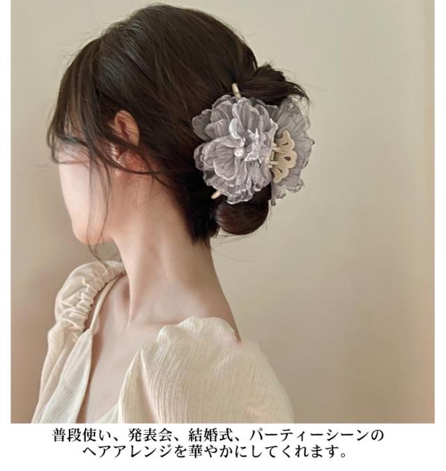 ヘアクリップ ヘアアクセサリー ふんわり 大きめ ボリューミー ヘアアクセ パーティー パール シフォン しっかり ヘアー クリップ 大人 上品 エレガント 結婚式 お呼ばれ グレー 可愛い 送料無料