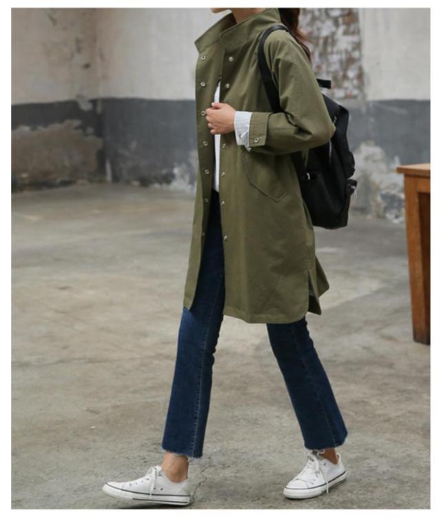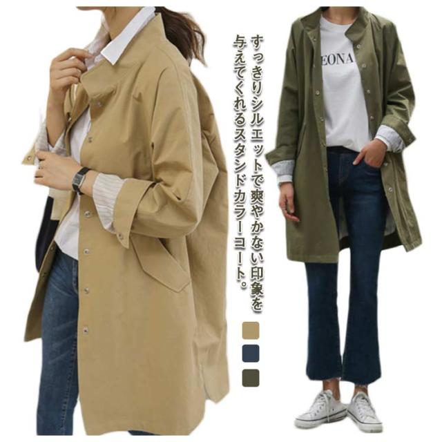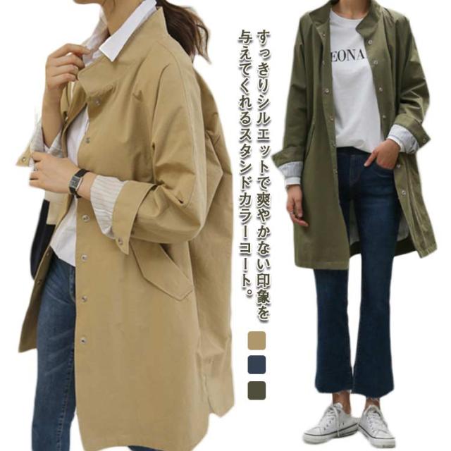 スプリングコート ミディアム丈 アウター スタンドカラー 裏地付き レディース 上着 スリット トレンチコート 羽織り ライトアウター 春服 秋冬 おしゃれ ジャンパー ロングコート 30代 40代 50代