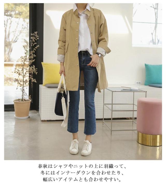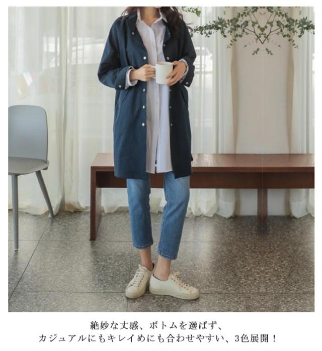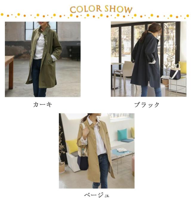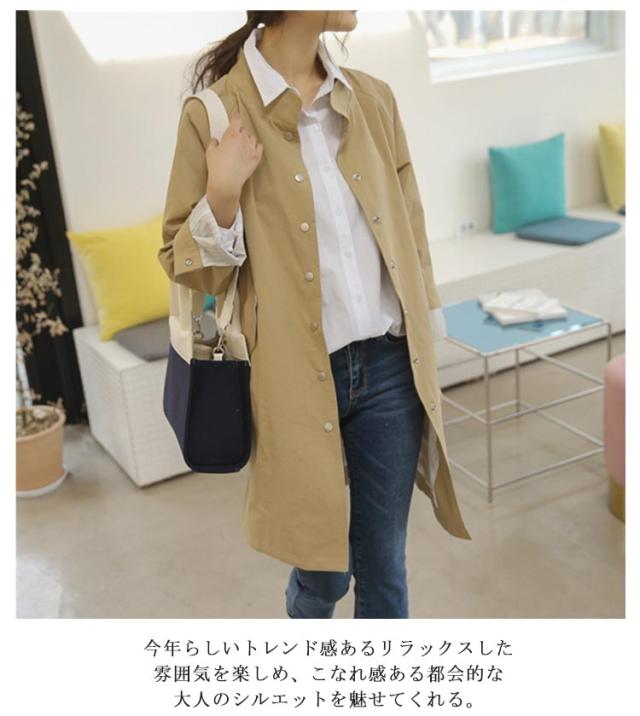| すっきりシルエットで爽やかない印象を与えてくれるスタンドカラーコート。 今年らしいトレンド感あるリラックスした雰囲気を楽しめ、こなれ感ある都会的な大人のシルエットを魅せてくれる。 春秋はシャツやニットの上に羽織って、冬にはインナーダウンを合わせたり、幅広いアイテムとも合わせやすい。 絶妙な丈感、ボトムを選ばず、カジュアルにもキレイめにも合わせやすい、3色展開! | |