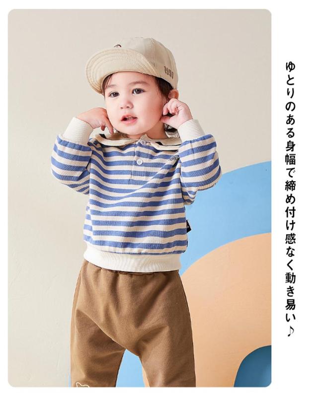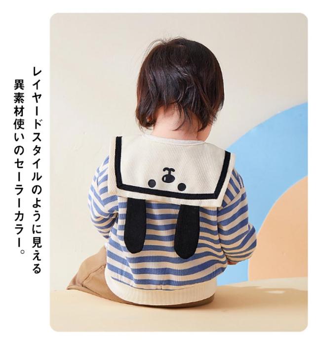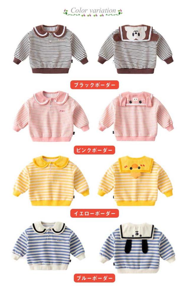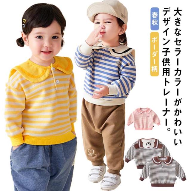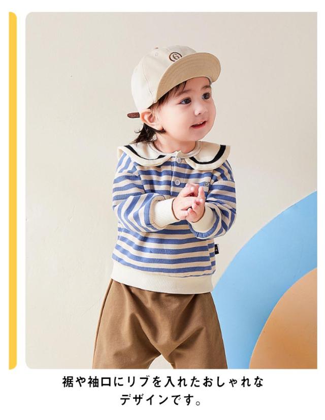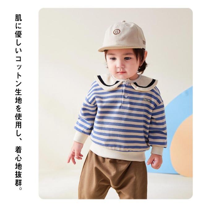 送料無料 子供服 トレーナー ボーダー柄 襟つき キッズ ベビー服 長袖 女の子 男の子 セーラー マリン風 コットン 綿 かわいい トップス シンプル カジュアル お出かけ 通学 通園 春服 春秋 グッズ