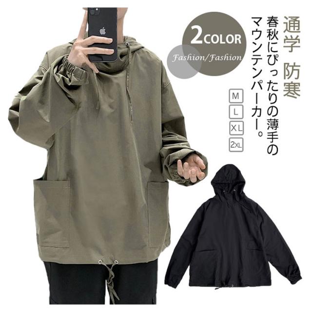 | M-2XL!春秋にぴったりの薄手のマウンテンパーカー。 防風性能に優れた生地を採用します。 小顔効果抜群のフードパーカー。 オーバーシルエットとドルマンスリーブで、体型カバーにも優れた1枚です。 大きめなポケットもワンポイント。 ディリーに使いやすい一着でぜひおススメです。 | |