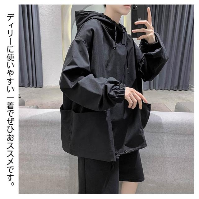 パーカー メンズ ビッグシルエット 春服 秋服 フード付き コート マウンテンパーカー メンズ プルオーバー ゆったり オーバーサイズ カジュアル服 大きめポケット 作業着 個性 ストリート メンズファッション 春 秋 カーキ 黒 送料無料