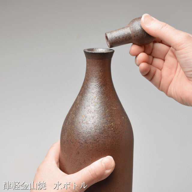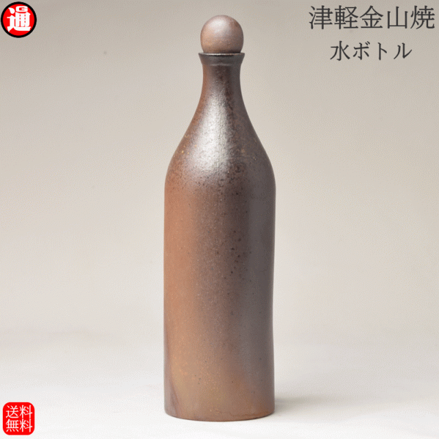送料無料 津軽金山焼 焼き締め 陶器 水ボトル
