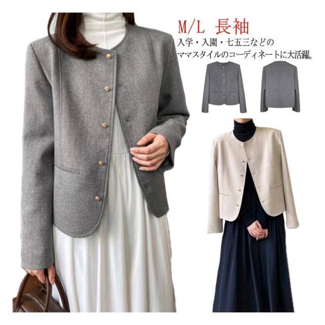 ジャケット 結婚式 ノーカラー ツイードジャケット ライトアウター 長袖 入学式 ツイードコートフォーマル 入園式 卒業式 レディース 白 グレー お宮参り 七五三 服装 母親 20代 30代 40代 ショット丈 送料無料