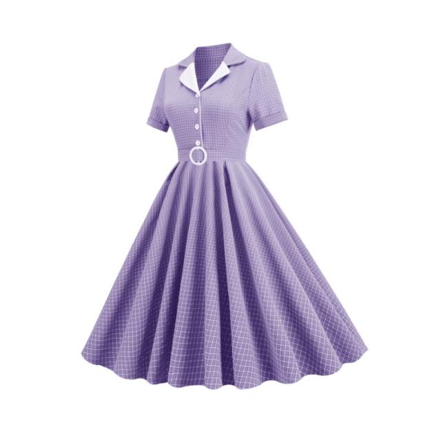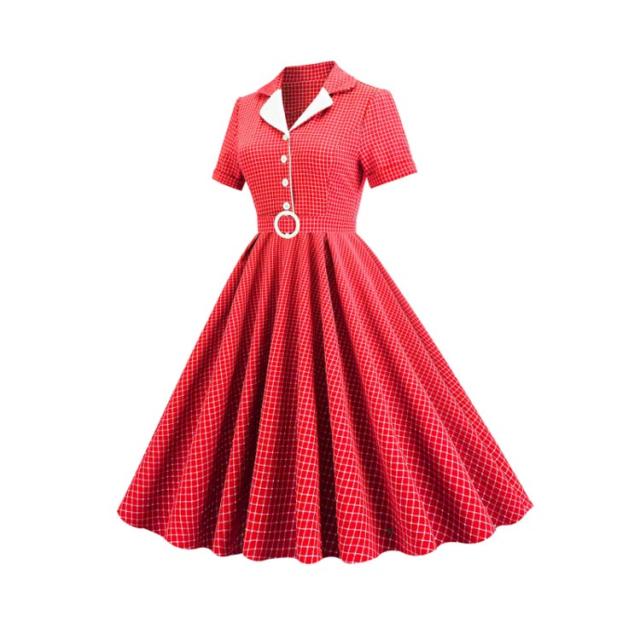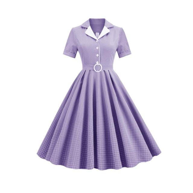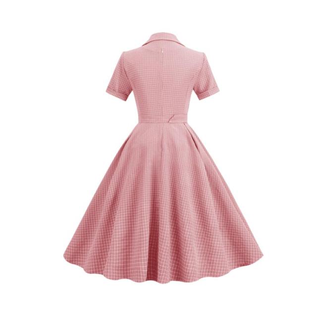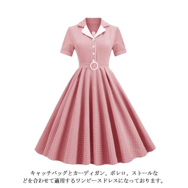 送料無料 ワンピース ドレス S-2XL Vネック 襟あり リボン付き 袖あり レトロワンピース かわいい Aライン フレアワンピース 50年代 お呼ばれ レディース クリスマス コスプレ 誕生日 プレゼント