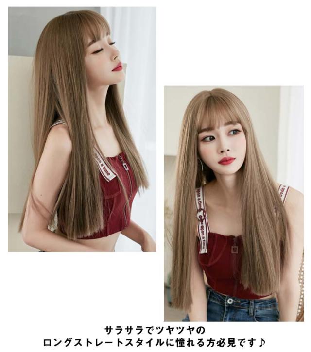 | 重く見えがちなヘアスタイルも、シースルーバングで軽やかな印象に仕上げました。 ヘアアクセサリーや帽子との相性も抜群だから、好きな小物と組み合わせることでオシャレの幅もぐんと広がります! サラサラでツヤツヤのロングストレートスタイルに憧れる方必見です♪ ナチュラルで自然、かわいいスタイルを楽しむことができます。 あらゆる女性におすすめの、かわいいフルウィッグです。 | |