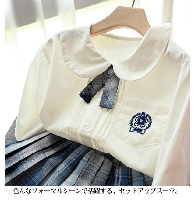 キッズ フォーマル 女の子 上下セット 制服 子供スーツ スクール制服 セットアップ スカート 韓国子供服 白シャツ 可愛い ハロウィン コスプレ コスチューム 入園式 卒園式 卒業式 発表会 ステージ衣装 演出用 学園祭 文化祭 パーティー 春夏秋 送料無料