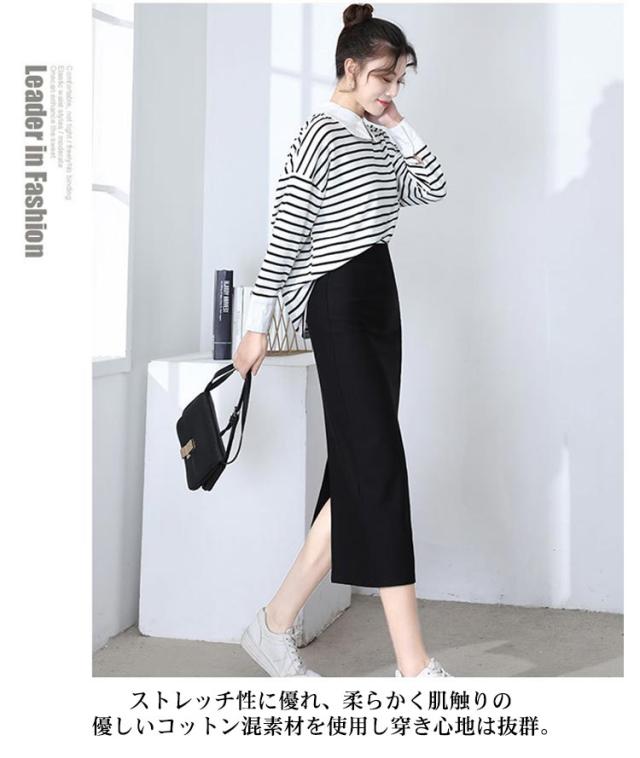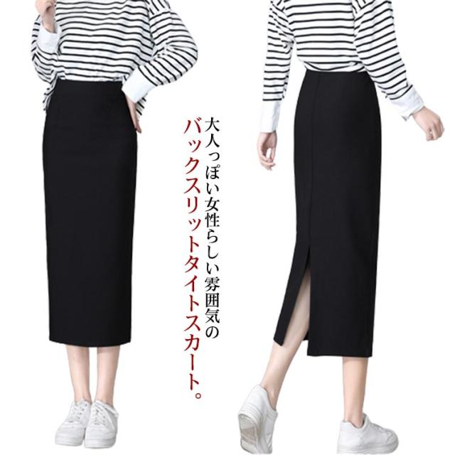 タイトスカート バックスリット レディース 黒 ペンシルスカート オフィスカジュアル 仕事 ストレッチ ウエストゴム ロング ミモレ丈 ボトムス 膝下 通勤 ハイウエスト ビジネス 綿 コットン 上品 送料無料