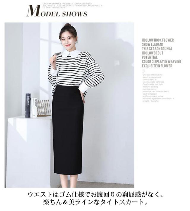 | 大人っぽい女性らしい雰囲気のバックスリットタイトスカート。 ボディラインにピタッとフィットするタイトシルエットで、女性らしい美ラインをメイクするタイトスカート。 露出度が少ない上品なミモレ丈で、スカートが苦手な方でも取り入れやすいデザインに。 ストレッチ性に優れ、柔らかく肌触りの優しいコットン混素材を使用し穿き心地は抜群。 ウエストはゴム仕様でお腹回りの窮屈感がなく、楽ちん&美ラインなタイトスカート。 通勤やオフィスだけでなく、お呼ばれやフォーマルなイベントにも大活躍できる1着です。 | |
