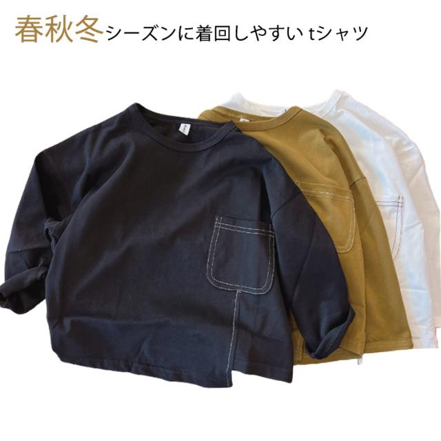 ロンT キッズ 無地 長袖Tシャツ 男の子 ロングTシャツ 子供服 子ども服 長袖シャツ カットソー 可愛い かわいい インナー スウェット シンプル 無地 クルーネック ジュニア 男女兼用 韓国 子供服 通園着 通学着 90cm 100cm 110cm 120cm 130cm 送料無料