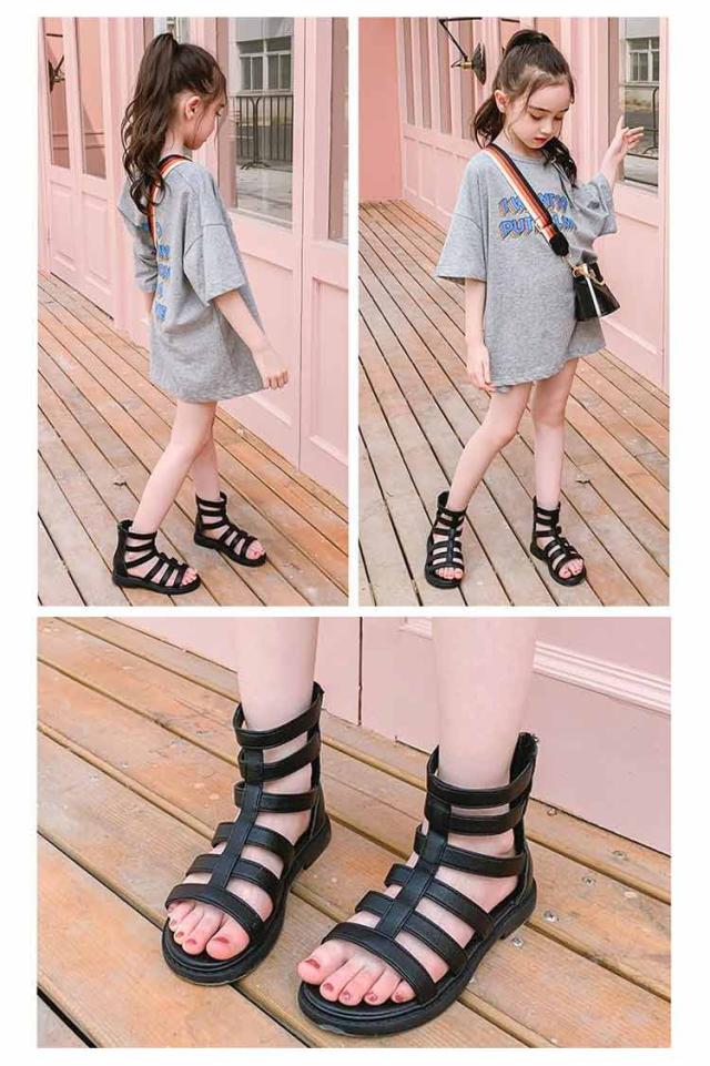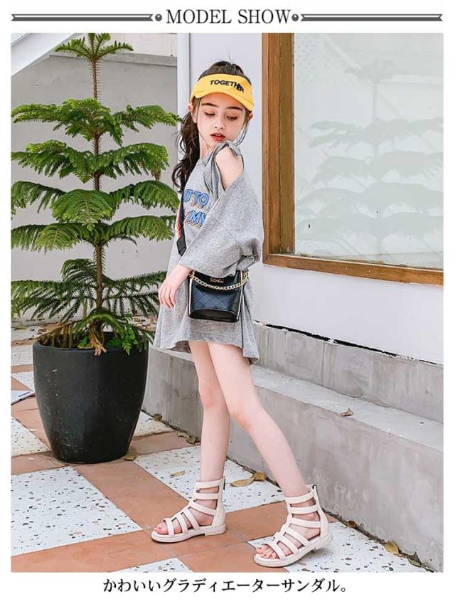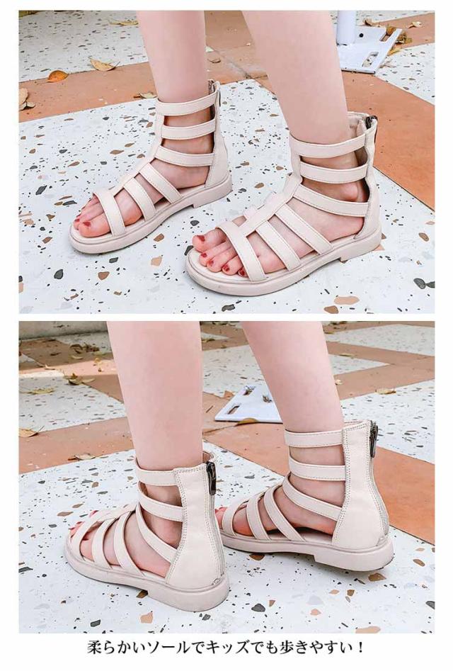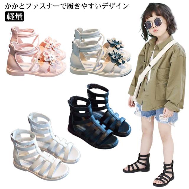 | かかとファスナーで履きやすいデザイン かわいいグラディエーターサンダル 柔らかいソールでキッズでも歩きやすい! | |
