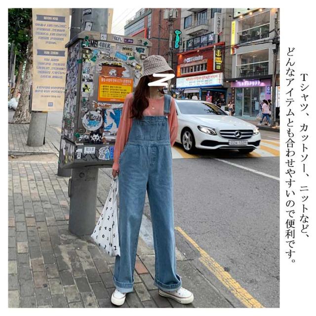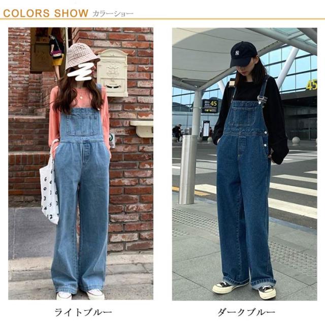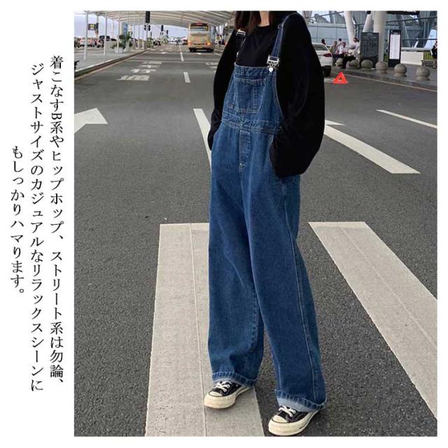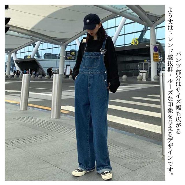 オーバーオール デニムオーバーオール サロペット シンプル ストリート系 レディース オールインワン ワイドパンツ つなぎ ゆったり 大きいサイズ S M L LL ロールアップ ロングパンツ 作業着 送料無料