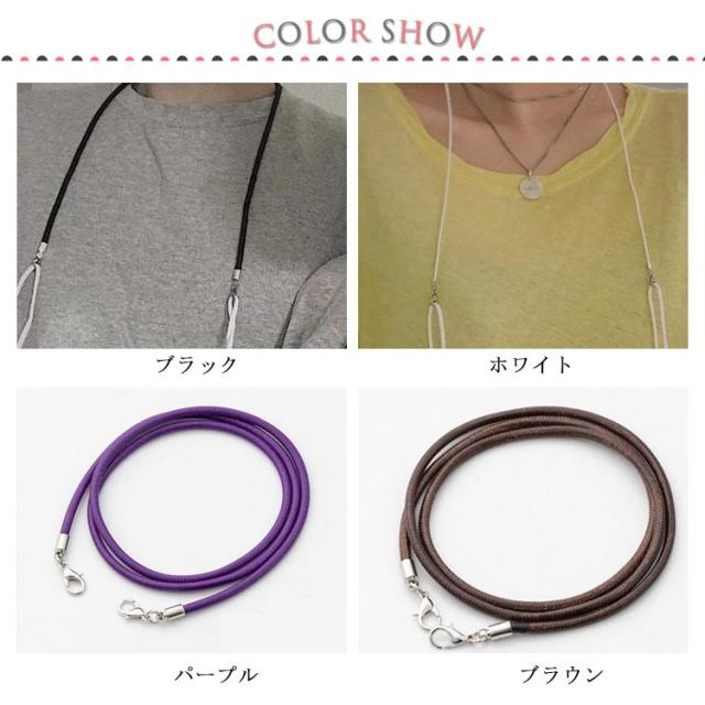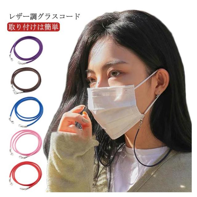| レザー調グラスコード:上質なレザーのような質感を楽しめるデザイン 取り付けは簡単:輪っかをめがねのつるに通してしぼるだけ | |