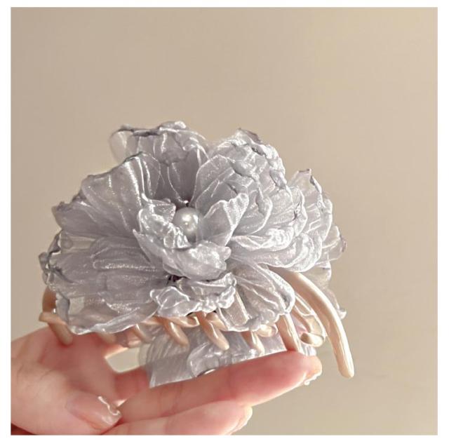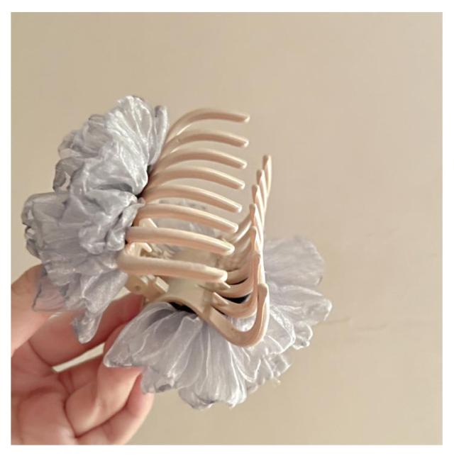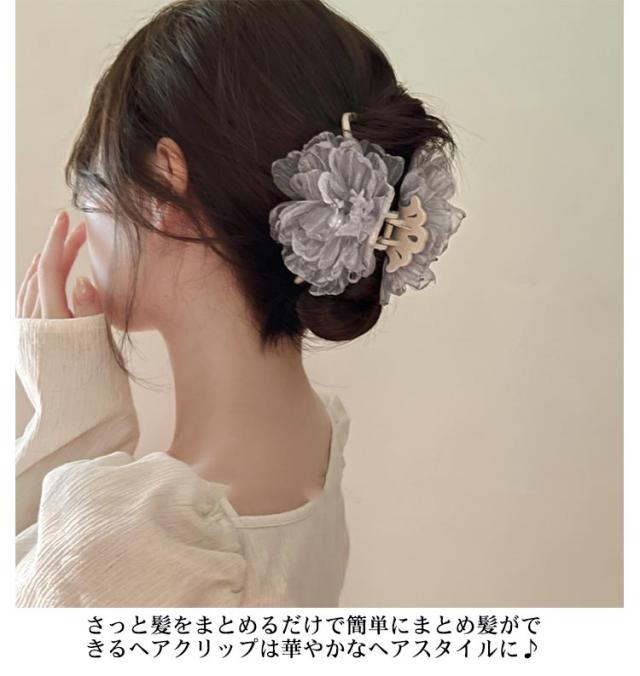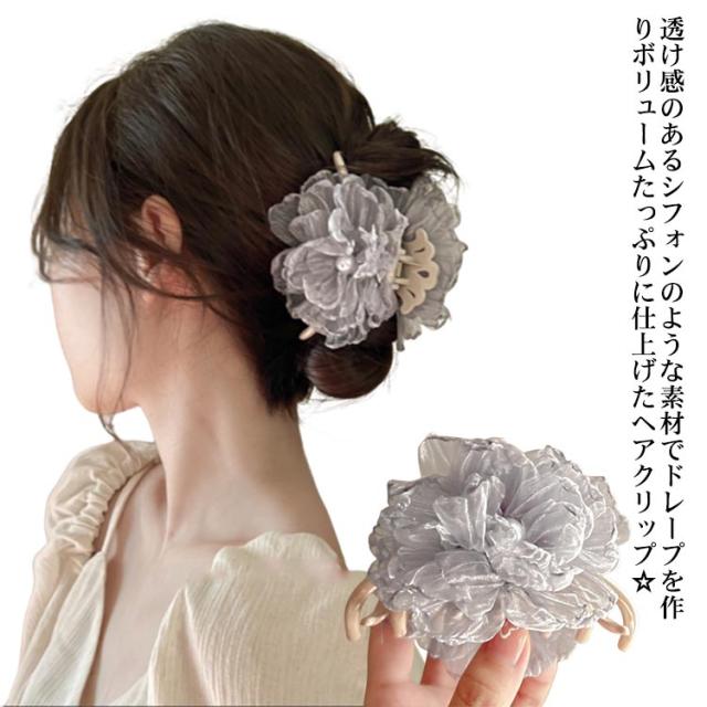ヘアクリップ ヘアアクセサリー ふんわり 大きめ ボリューミー ヘアアクセ パーティー パール シフォン しっかり ヘアー クリップ 大人 上品 エレガント 結婚式 お呼ばれ グレー 可愛い 送料無料