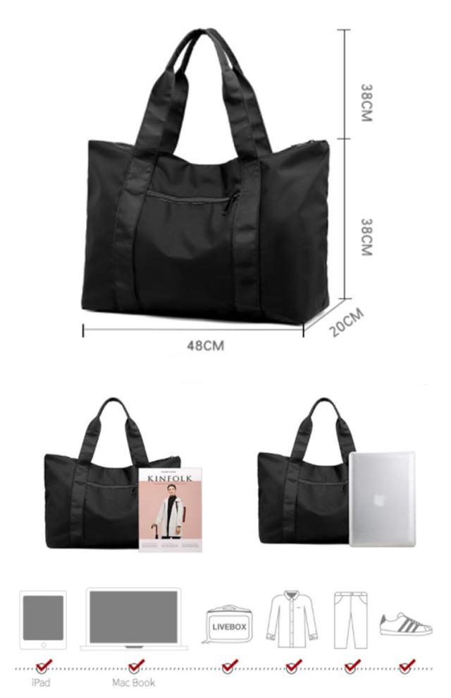 | 2泊程度の衣類が軽々入るトートバッグバッグ。 丈夫で軽いナイロン製で、撥水加工も施され、汚れにくくお手入れ簡単。 キャリーケースハンドルにも通せる設計なので、旅行や出張など時、持ち運びもラクラク。 キャンプやアウトドア、旅行やジム通いなどあらゆる用途に使って頂けるように軽量薄型バッグです。 | |