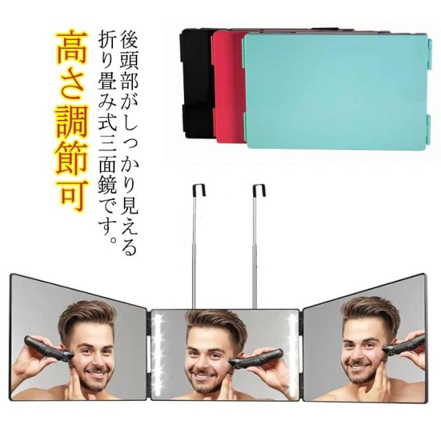 | 後頭部がしっかり見える折り畳み式三面鏡です。 自分好みの角度に調節可能なので、正面だけでなく、自分では見えない後頭部や横顔など顔全体をしっかりチェックできます。 フックが付いているので、壁などに掛けて使用することができます。 フックの長さは、使用場所や使う人の身長に合わせて調整可能! 折りたたみ式なので、使用しないときはコンパクトに収納でき、ホコリや破裂を防ぎます。化粧台・洗面台・部屋・楽屋などに大活躍! また、バッグに入れて持ち運びも簡単にできます。 卓上での使用もでき、座ってメイクやヘアセットを行う場合にも使える万能型です。 ドアや窓、クローゼットの扉の上部に引っ掛けるだけで簡単に設置出来ます。 | |