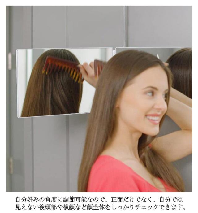 鏡 三面鏡 壁掛け 北欧 おしゃれ セルフカット 立体 鏡 化粧鏡 壁 折りたたみ式 スタンドミラー 卓上ミラー 化粧鏡 化粧 メイク 自宅サロン 角度調整 高さ調節可 大型 ミラー 工具不要 飛散防止 HD鏡面 軽量 ドア/窓/玄関/クローゼット/ドレッサー/洗面所