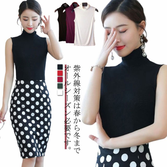 タートルネック ノースリーブ tシャツ レディース ノースリーブtシャツ 綿 薄手 インナー トップス カットソー レイヤード ハイネックtシャツ 無地 tシャツ 春夏 日よけ コットン 大人可愛い シンプル カジュアル