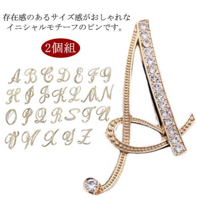 2個組 イニシャルブローチ ブローチ コサージュ アルファベット パーティー アクセサリー ワンポイント ワンポイントアクセサリー おしゃれ キラキラ 上品 入学式 入園式 卒業式 卒園式 結婚式 成人式 送料無料