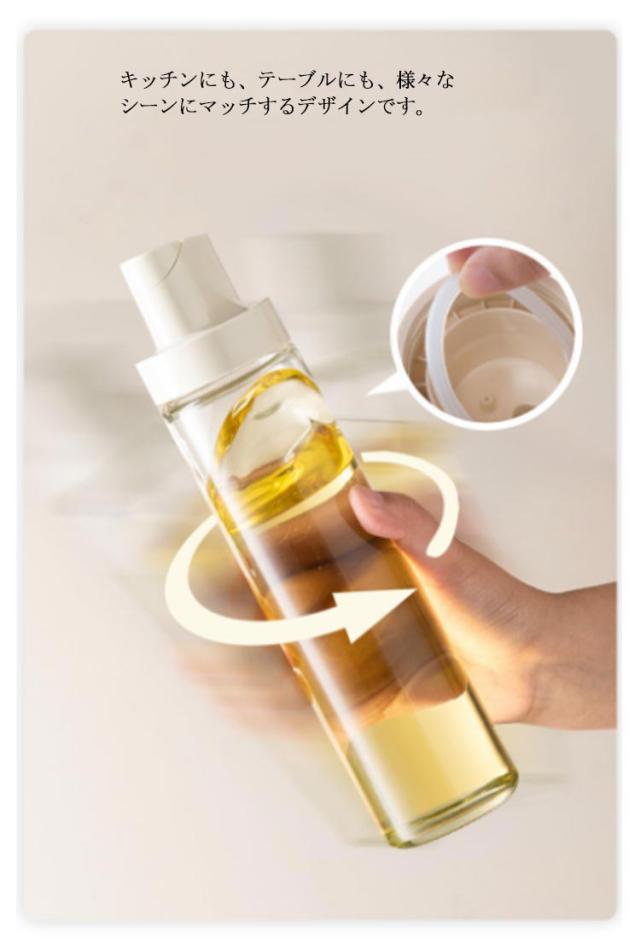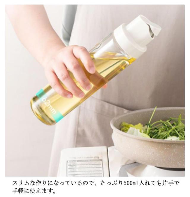 | 4個セット!調理油・オリーブオイル・ごま油などを入れて、便利に使えるオイルボトル。 片手で本体を傾けるだけで蓋が自動開閉します。自動開閉のため、中身をそそぐ時以外は常時フタが閉じた状態。 本体ボディは透明なガラス製で中身や残量がよく見えるようになっています。 間口の広いタイプで、オイルを移し替える際にわざわざ道具を準備する必要がなく、さらにはボトルを汚すことなく詰め替えができます。 本体、キャップ、注ぎ口は3分割に外すことができ、丸洗い可能でお手入れが簡単なのも魅力です。 スリムな作りになっているので、たっぷり500ml入れても片手で手軽に使えます。 オイルだけでなく、酒やみりんなどほかの調味料も揃えると一体感も増します。 キッチンにも、テーブルにも、様々なシーンにマッチするデザインです。 | |