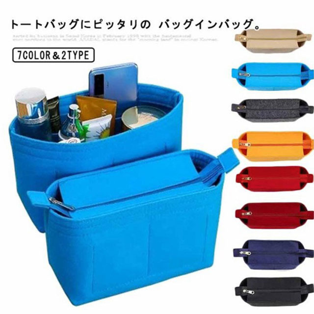 バッグインバッグ 2タイプ バック インバッグ ファスナー フェルト 大きめ 小さめ インナーバッグ 送料無料 インナーバック バッグの中身 収納 収納バッグ 整理 軽量 軽い 自立 大容量 ポーチ レディース 整理整頓 おしゃれ