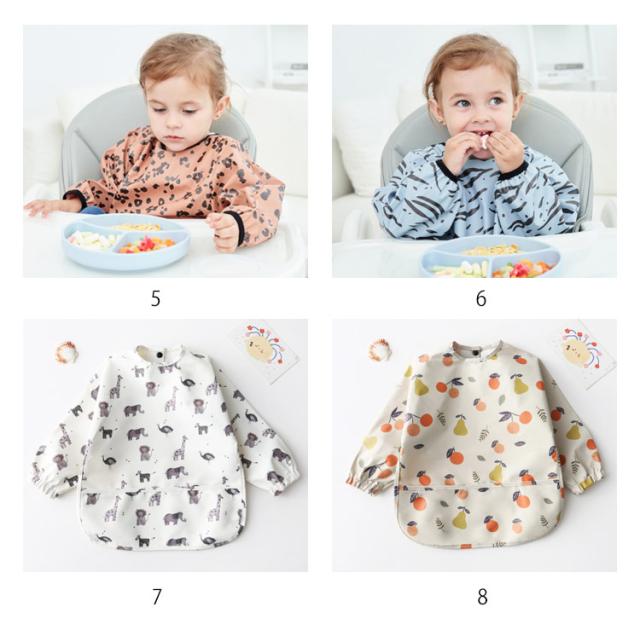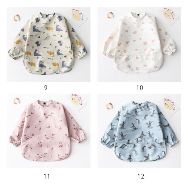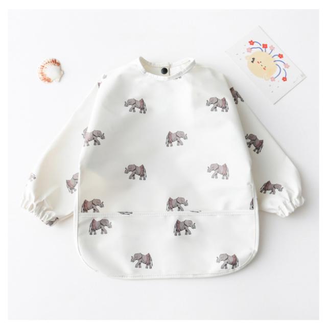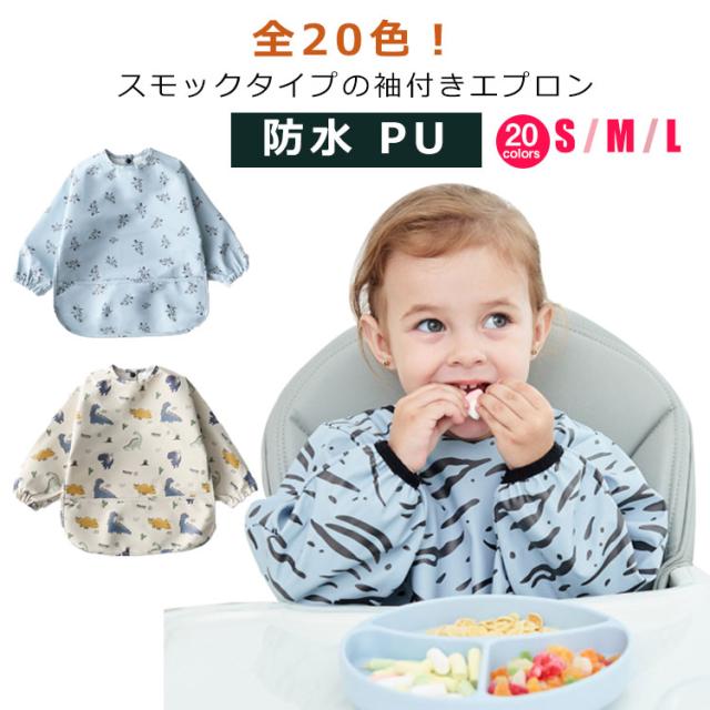 お食事エプロン スモック 長袖 ベビー 食事用エプロン 食べこぼしガード 防水 PU お食事スタイ 離乳食 保育園 お食事用エプロン 赤ちゃん 入園準備 エプロン ポケット付き 洗濯可 ベビースモック 女の子 男の子 出産祝い 大きめサイズ ギフト 送料無料