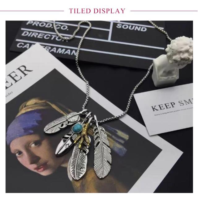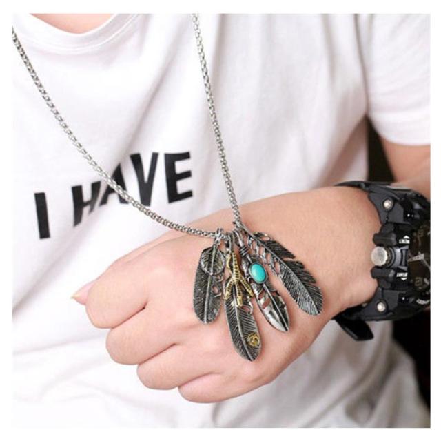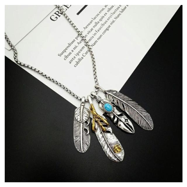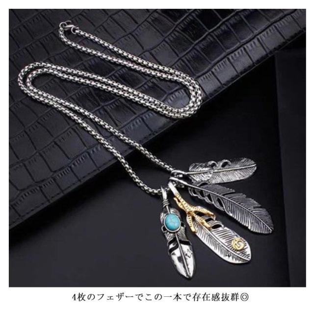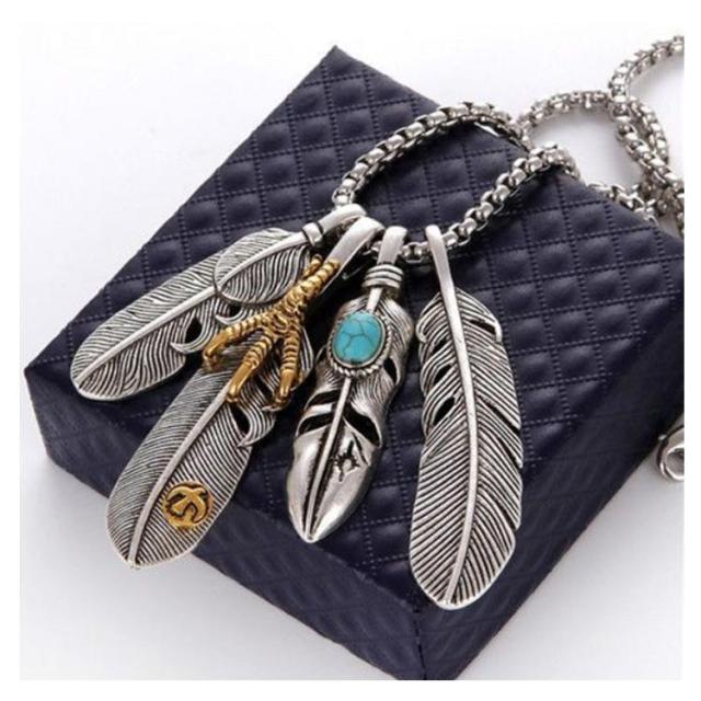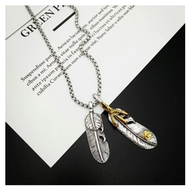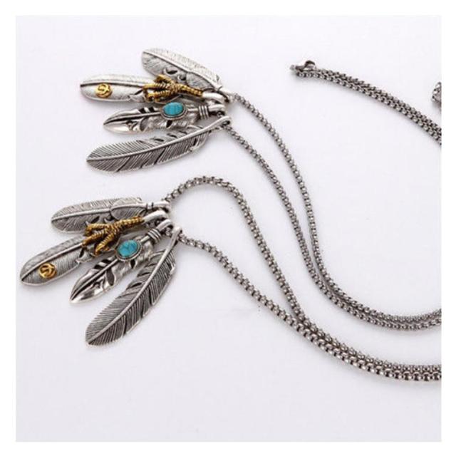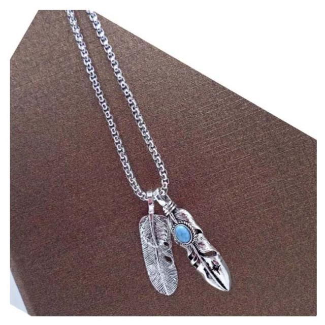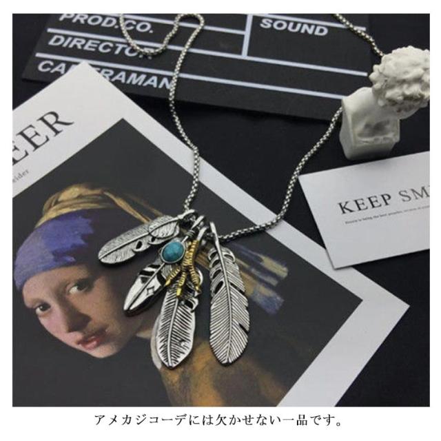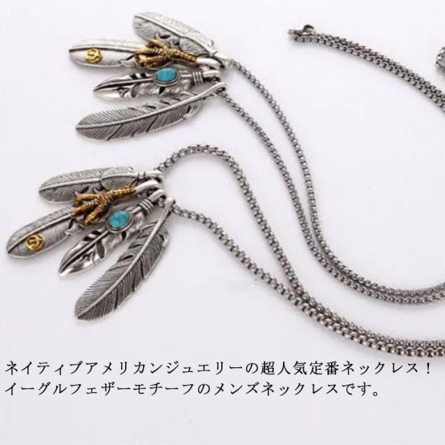 アメカジ メンズネックレス メンズ ネックレス アメカジタイプダブルフェザーネックレス フェザー イーグル アクセサリー 送料無料