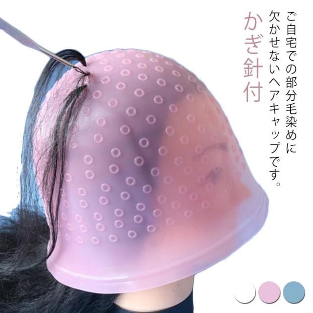 毛染め キャップ メッシュ染め かぎ針付き シリコン製 穴あけ不要 ヘアカラー 髪染め ヘアキャップ 自宅用 再利用可能 部分染め セルフカラー 送料無料