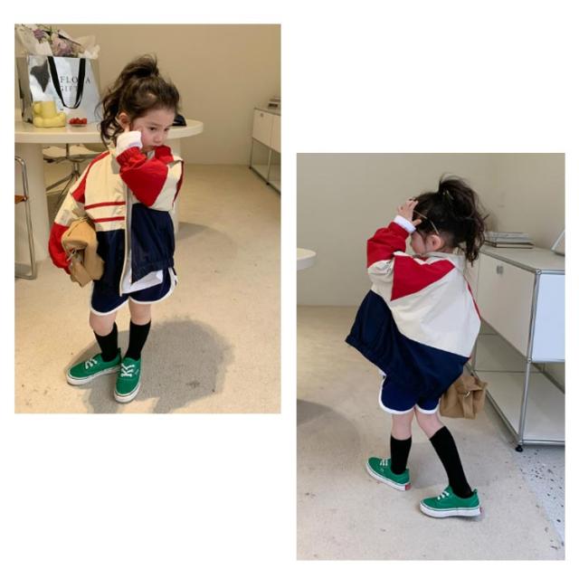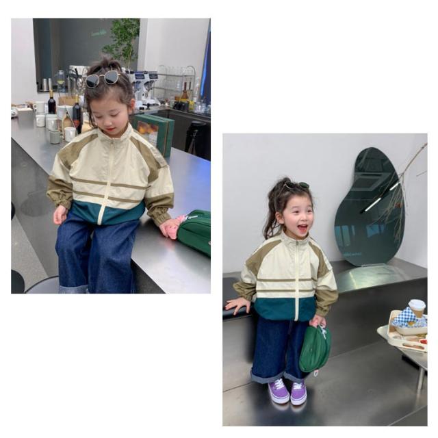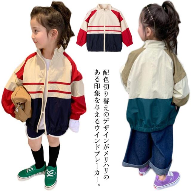 子供服 ウインドブレーカー マウンテンパーカー ジップアップ ジャケット 配色 切り替え キッズ用ウィンドブレーカー 女の子 キッズ ガールズ 軽量 羽織り 上着 アウター カジュアル 通園 通学 全2色