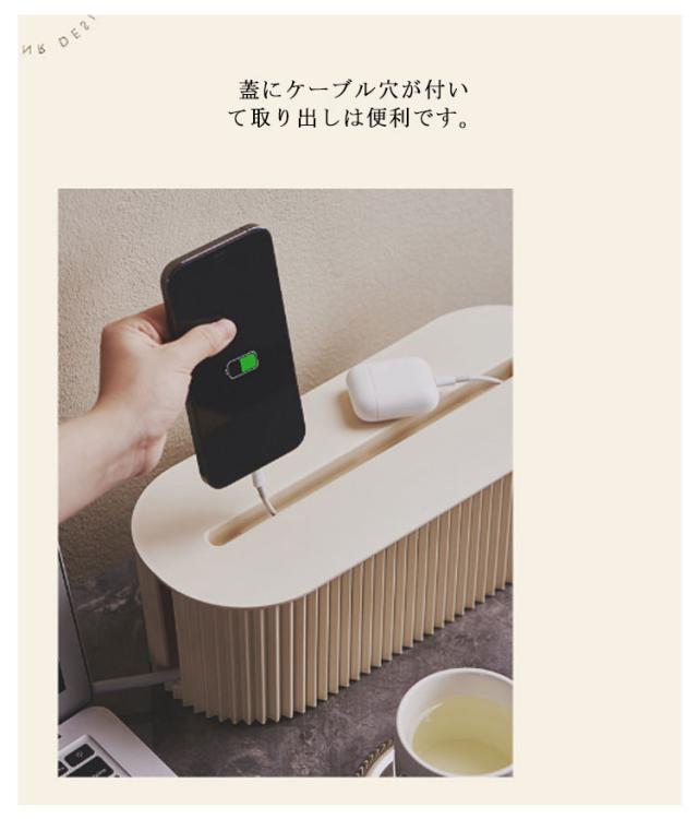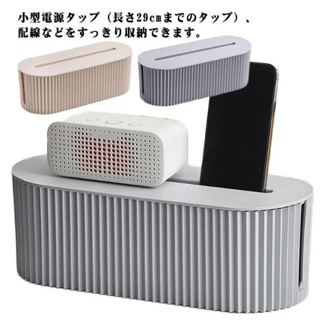 | 小型電源タップ(長さ29cmまでのタップ)、配線などをすっきり収納できます。 蓋にケーブル穴が付いて取り出しは便利です。 プラスチック製なので、汚れなども簡単に拭き取りでき、洗うことも可能です。 リビングのテレビラックなど人目に付く場所に設置しても雰囲気を損なわないスタイリッシュデザインです。 | |