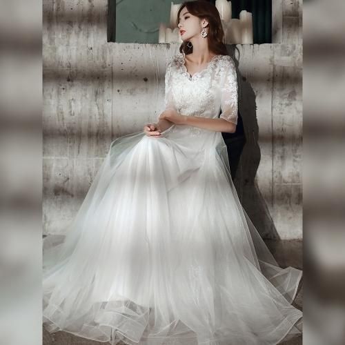 清楚で爽やかな印象を与えてくれるオールホワイトのロングドレス。