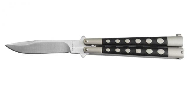 5インチ バタフライナイフ【艶消し:シルバー/ブラック】(側面スリット) 7126P