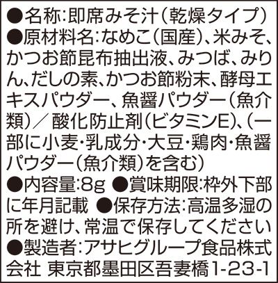 | 内容量 | ■ 旨だし おみそ汁 なめこ 合わせ 8g 10食 |