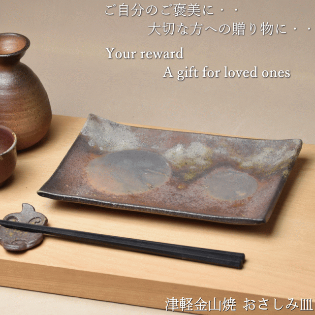 おさしみ皿 (2.5cm×21.0cm×14.5 398g) 津軽金山焼 焼き締め 長い皿 モダン 和モダン 渋い 陶器 おしゃれ 角皿 刺身皿 焼鳥皿 焼き魚皿 焼物皿 カフェ風 寿司皿 お皿 菓子皿 串皿 日本製 陶器 日本 陶器 贈り物 ギフト 誕生日 ギフト 陶器