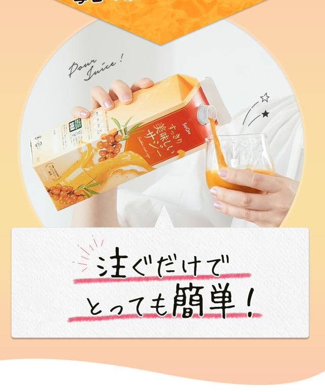 1日60〜100mlを目安に、2〜3倍程度に希釈してお飲みください。※2倍希釈時果汁27.5%(サジー1:ジュースや水など1)