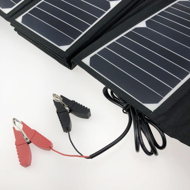 直流家ソーラーパネル・ソラさんで自動車のバッテリー端子などに接続させて充電するケーブルとなります。5A以内の電流に対応しております。