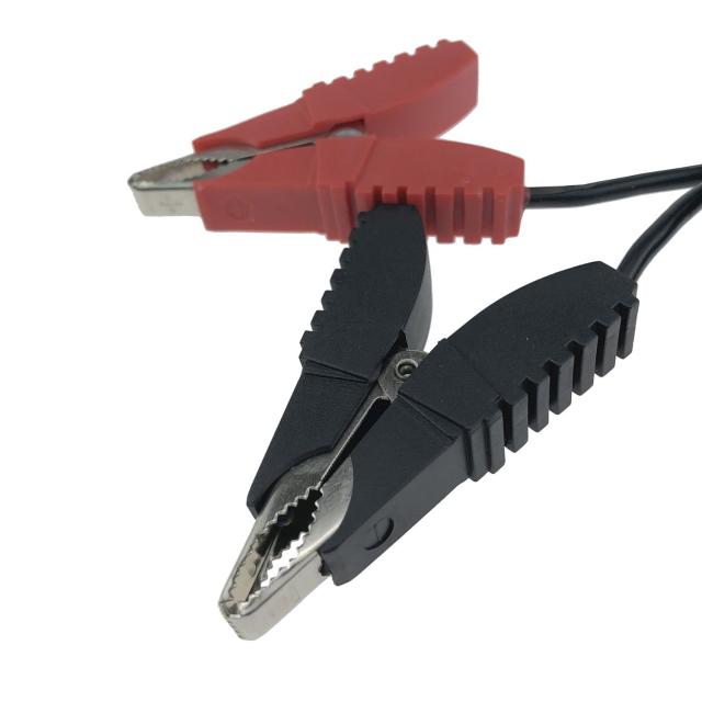 使い易いコンパクトサイズのワニグチクリップを採用し、ケーブルは大容量10Aを流せる太さ(配線2sq)で製造されております。