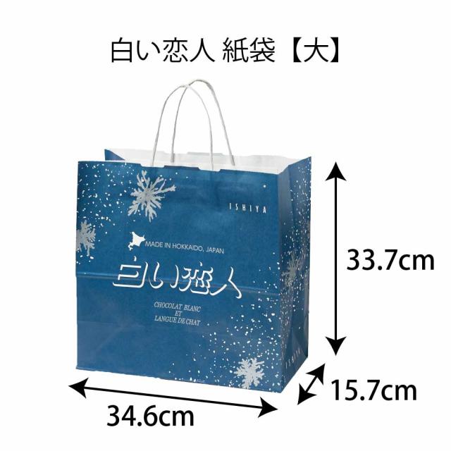 | サイズ | 白い恋人 紙袋 大サイズ:高さ 33.7cm 横34.6cm マチ 15.7cm |