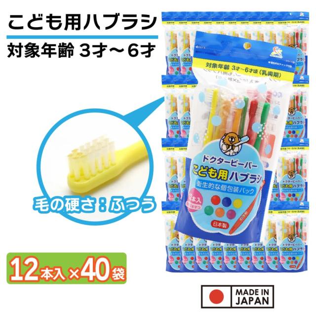 歯ブラシ 子供用 ふつう 480本(12本入り×40袋) 3才〜6才 こども用ハブラシ 歯磨き キッズ 個包装 日本製