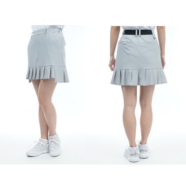 段差のあるフレアタックが女性らしく、後ろ裾が長いのでかがんだ際も安心感があります。