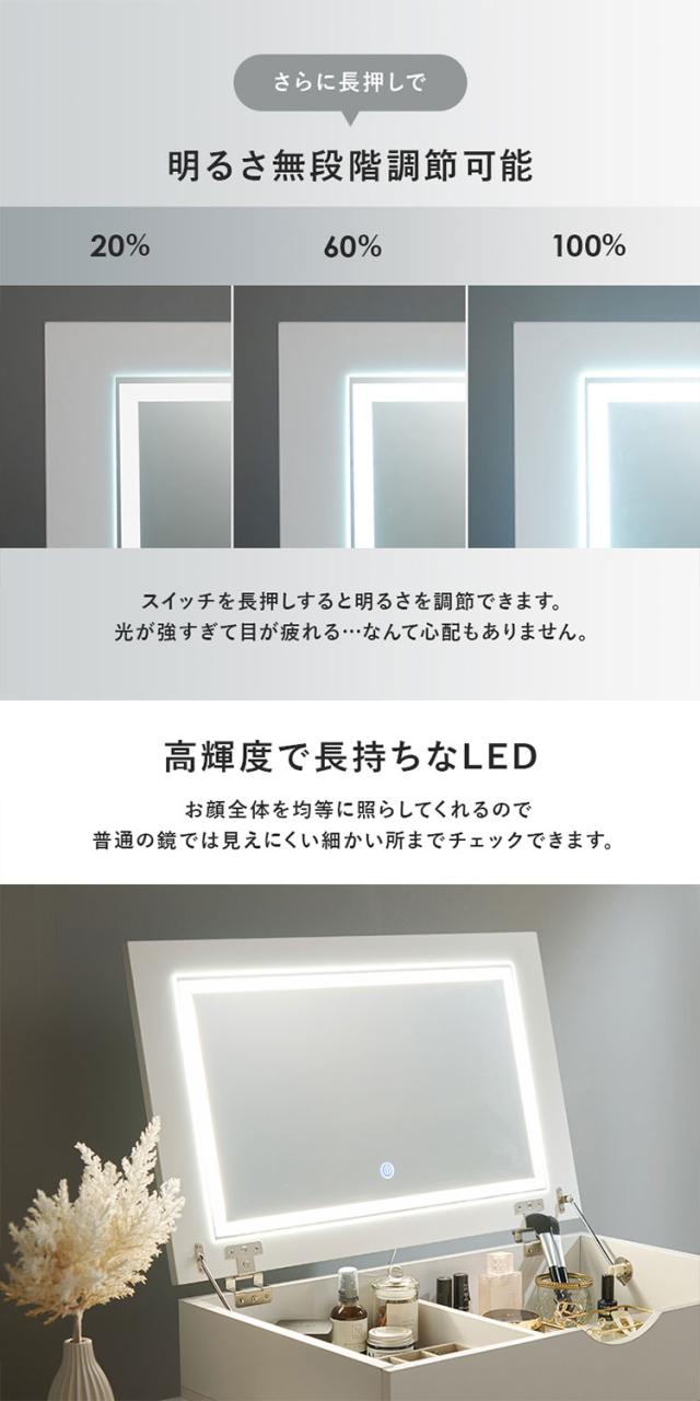 コスメワゴン、キャスター付き、LEDライト、ホワイト、伸縮式コスメワゴン、幅67~122.5cm、コスメボックス、コスメテーブル、ドレッサー、化粧台、ミラー付き、木製、机、デスク、女優ライト、収納ボックス、伸縮ドレッサー、伸縮、収納、クリスタル調取っ手、角度調節可能、大容量、コスメ収納、かわいい、おしゃれ、シンプル、韓国、ローテーブル