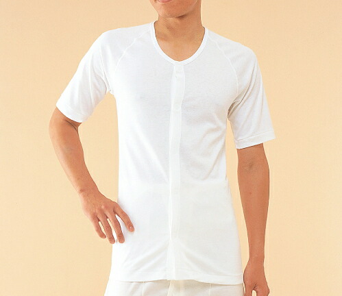 【メール便送料無料】紳士ひば加工前開き5分袖(ラグラン袖・丸型マジック)M/L ワンタッチ肌着・最高の肌ざわり 無蛍光生地使用 介護肌着 介護用品 介護衣料 介護服 高齢者 老人 お年寄り 病院 施設 入院 通院 介護 リハビリ パジャマ 着替え 下着 インナー