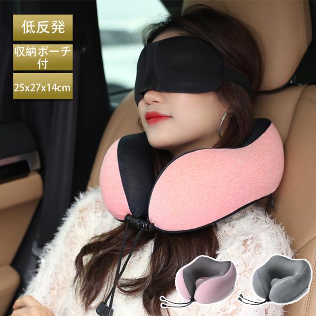 ネックピロー 低反発 携帯枕 首枕 車 旅行 飛行機 新幹線 U型枕 オフィス 快眠 昼寝 収納ポーチ付 テレワーク 新生活 父の