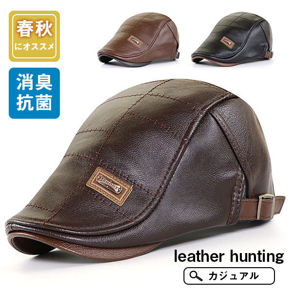 ハンチング帽 ハンチング帽子 メンズ モナコハンチング フェイクレザー ハンチング 春 夏 PUレザー 男女兼用 父の日 ギフト
