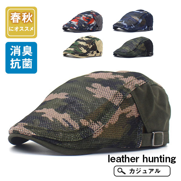 ハンチング 帽子 メンズ メッシュ 迷彩 ハンチング フェイクレザー ハンチング 春 夏 男女兼用 父の日 ギフト 40代 50代 60代