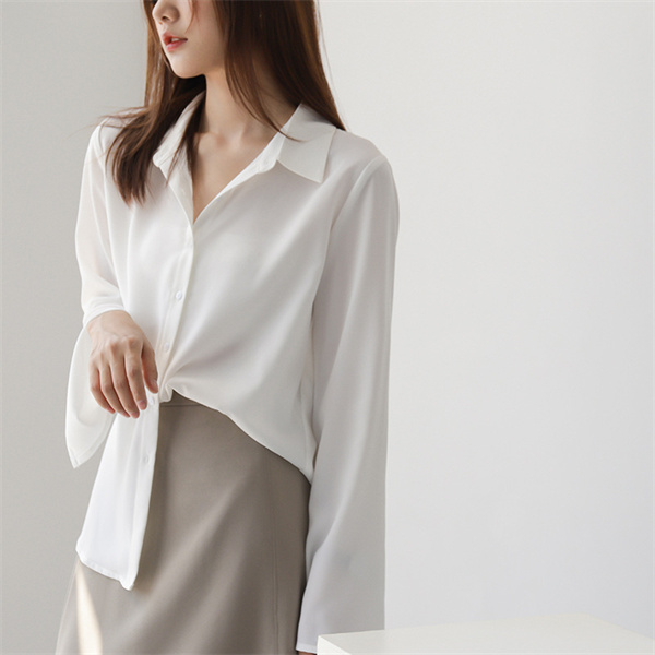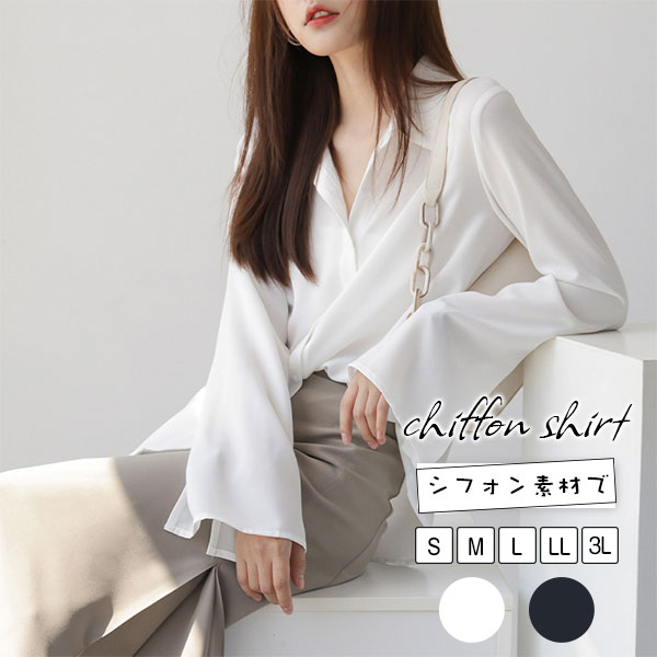 シャツブラウス レディース フレアスリーブ きれいめ ロング丈 オシャレ シフォンシャツ 長袖トップス 大人 通勤 ゆったり 秋 冬 春 夏
