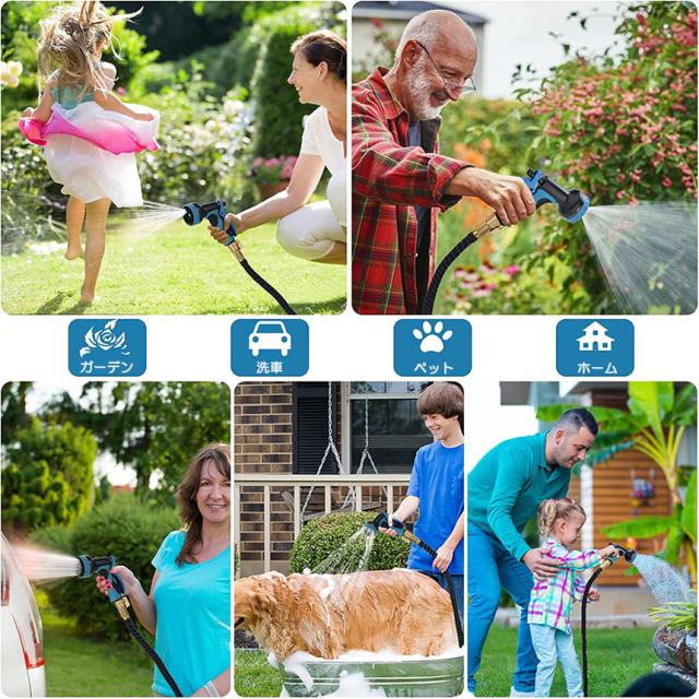 【幅広く使えます】:散水ノズルは10パターンの散水機能を搭載し、マンションや一戸建てのご使用に適しています。庭、ベランダやマンションの掃除、植物への水まき、お子様のプールへの給水、洗車などに幅広く使えます。