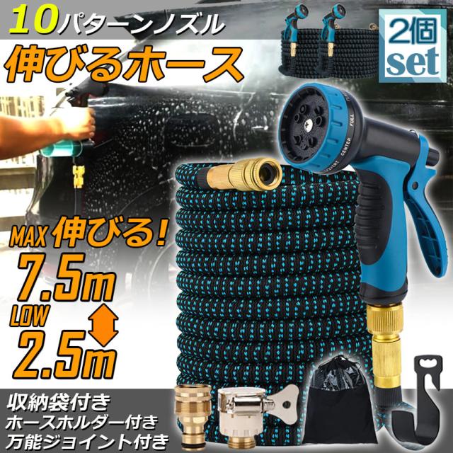 ホース 散水ホース 2個セット ホースリール 伸縮ホース 伸びるホース 洗車ホース 3倍に伸びる 10パターンノズル 超軽量 伸びるホースノズル 散水ノズル コンパクト収納 洗車 ガーデニング 庭 ベランダ 玄関 散水 大掃除 収納袋 付き