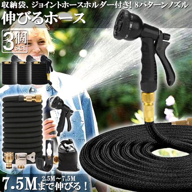ホース 散水ホース 3個セット ホースリール 伸縮ホース 伸びるホース 洗車ホース 3倍に伸びる 超軽量 伸びるホースノズル 散水ノズル コンパクト収納 洗車 ガーデニング 庭 ベランダ 玄関 散水 大掃除 収納袋 付き